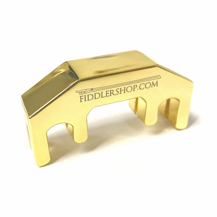 Fiddlershop.com carries these gold and nickel plated brass mutes. They offer the most amount of muting but the exposed metal may damage the bridge or instrument if it is knocked off. I only can recommend the metal practice mutes for violin or viola as they are less likely to fall off as the instrument is held in a horizontal position.