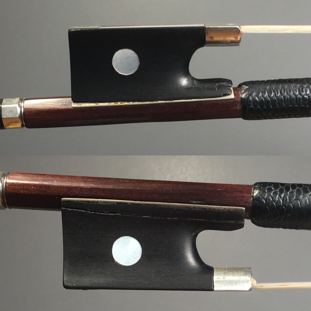The frog is lightly polished and the bow reassembled. This repaired bow will now function properly and serve the musician for many more years. I share some thoughts about the value of repaired bows in the article: The Future of Restored Bows.