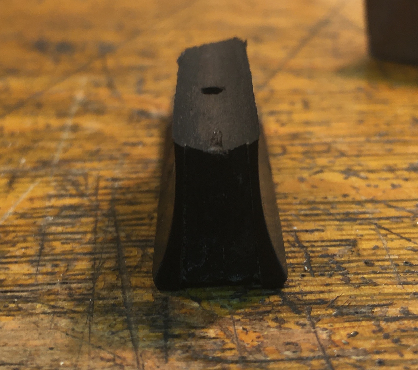 Once a good fit is established. The dowel is cut close to length and glued to the frog.